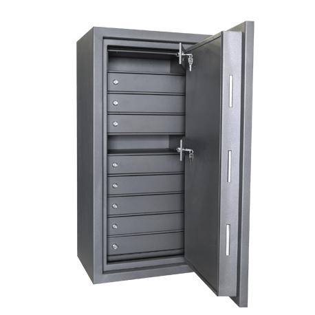 Caja fuerte-armero de seguridad con 10 compartimentos individuales con llave y cerradura externa de llave y electrónica